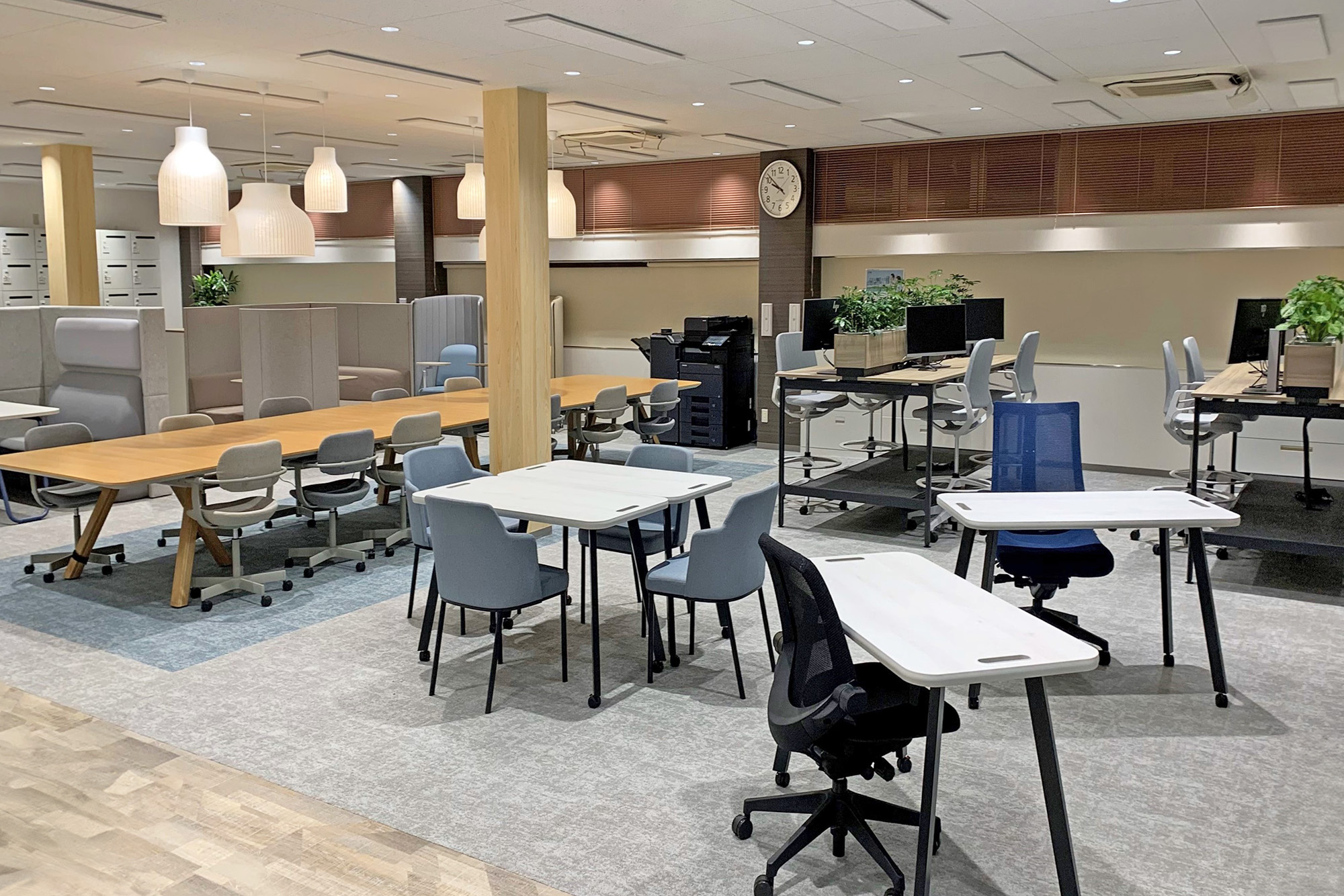 社員の出社率や業務内容に応じて変化するデスク配置(フリーアドレス)の具体的な運用ルールと、それに伴う書類・データ管理の仕組みを見学。
