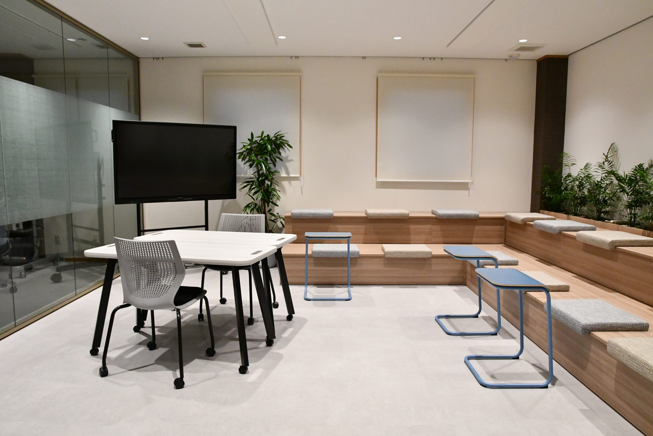 健康経営プログラムの紹介に加え、植物レンタル、香り(アロマ)の導入、ITOKIなどのオフィス家具を実際に配置している現場を見学。